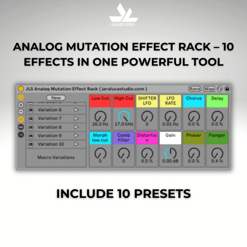 Analog Mutations is a premium sound design toolkit built for Ableton Live Suite 12.1.5, combining two custom-built Instrument Racks and a powerful FX Rack. Designed for instant inspiration, modular control, and analog character – it’s your new go-to tool for Goa Trance, Psytrance, Techno, and beyond.